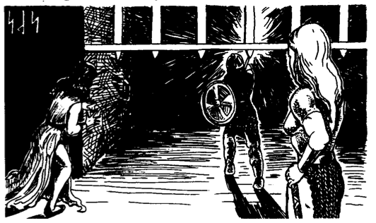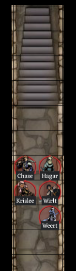 With some comfort in Krislee’s Charm Person spell, and the gift of food and promise of more gold will keep the kobolds on your side, you carefully exit the room and head back to the portcullis. There you see a grisly sight. A dead goblin lies on the floor, black blood splattered everywhere, where the portcullis evidently came crashing down on him, impaling him and killing him quickly. Glancing down the big hallway, you see it is still bright daylight outside (it’s noon), so the goblins that left their dead behind likely didn’t go outdoors. They must have lifted one of the other portcullises and left by the corridor beyond.
