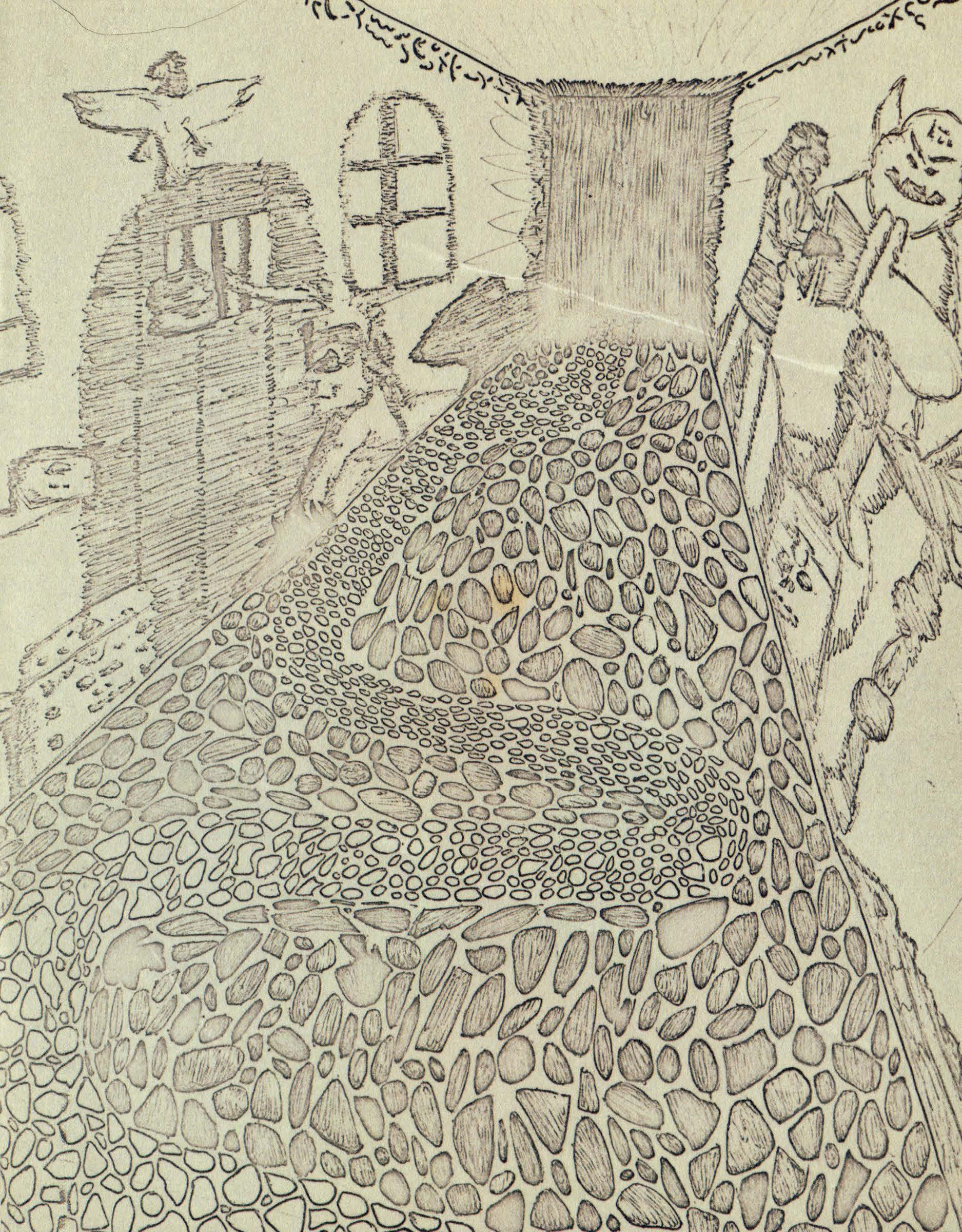 The party cautiously followed the mosaic path, tapping the floor ahead to try to detect pit traps. None were found.