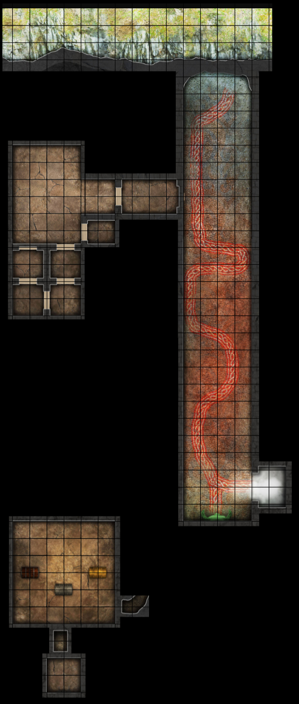 They found themselves teleported into a 10 ft x 10 ft room with no apparent exits. There were 3 levers on the wall, each lever could be moved up, down, left, or right. After playing with them a little bit, they moved all three upwards at the same time, which opened a trap door in the ceiling. Dex climbed up and found a narrow passage that could only be crawled through. The others followed. Dex came to a turn in the passage and saw a passage that went vertical above him for 10 ft. He climbed it, and discovered a secret door at the top. Everyone followed into a new room with no exits.